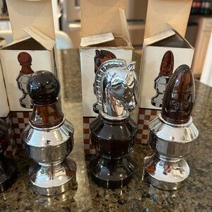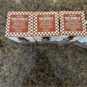 Avon Chess Men's Spicy After Shave (6 items 3 oz each) In Boxes with After Shave The King II, The Queen II, The Rook II, The Pawn II, The Smart Move II, The Bishop II beautiful bottles silver and brown Vintage Collectibles Perfume Cologne