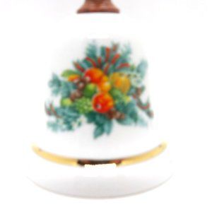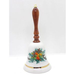 Avon Christmas Bell Porcelain with Wood Handle Gold Trim 1985 NOS