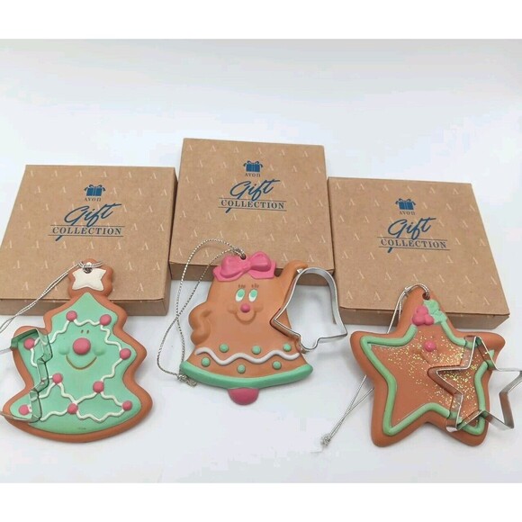 Avon Christmas Gingerbread Cookie Cutter 3 Ornaments Tree Bell Star Collectable