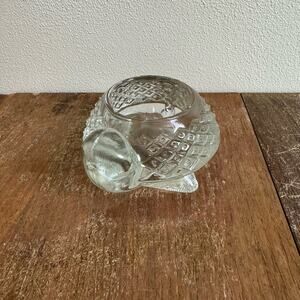 Avon Clear Glass Turtle Votive Tea light Candle Holder Diamond Pattern HEAVY