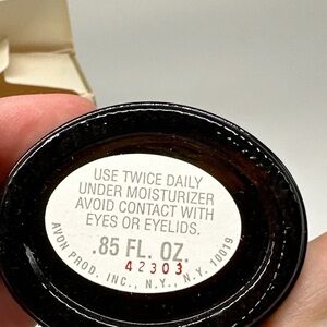Enhance your skincare routine with Avon's Collagen Booster. Designed to control lines and improve skin texture. Comes in a sleek, dark bottle with a gold cap.