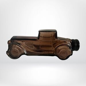 The Avon Sterling Six aftershave cologne decanter is brown in color and shaped like a vintage car. The decanter was introduced in 1967. The car design was inspired by the early 20th century and resembles a Model-A Ford pickup truck. The cologne decanter is in great vintage condition. It has the original sticker on the back and an embossed Avon logo on the front. It does not include the Sterling Six aftershave.
