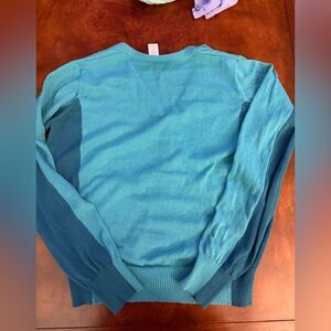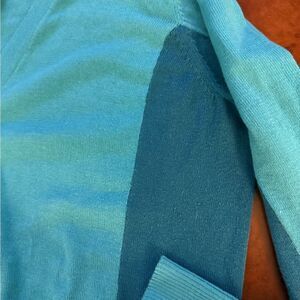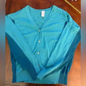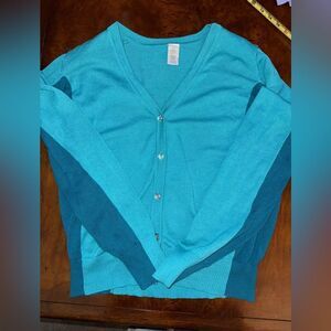 Avon Color Block Two Tone Blue Button Down Cardagain Sweater Size Large