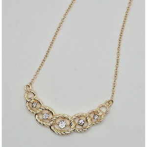 Elegant gold-tone jewelry set featuring a matching necklace and dangle earrings with a timeless circular link design. Each link has a twisted rope-style texture accented with sparkling clear rhinestones that catch the light beautifully. The necklace has an adjustable chain with a lobster clasp for a secure fit, and the earrings feature coordinated triple-loop drops that complement the necklace perfectly.