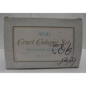 Avon Cruet Cologne Set Moodwind Cologne Vtg glass decanter saucer 8 fl oz w/box