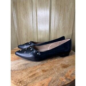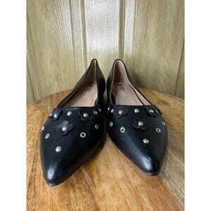 Avon Cushion Walk Flats 8 Womens Black Slip On Point Toe Flower Studded Shoes