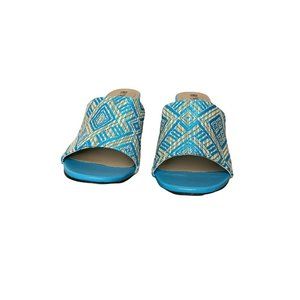 Avon Cushion Walk Slides Sandal Block Heel Womens 10 Blue Straw Weave Mules Shoes