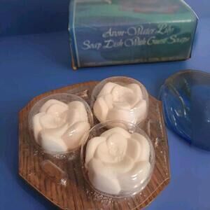 Avon Decorative Soap With Water Lily Soap Dish. Three Different Fragrances