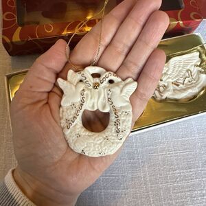 Avon Exclusive 2001 Set of 3 Bisque Porcelain Ornaments/24K Gold Accent