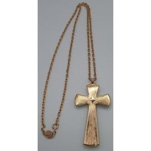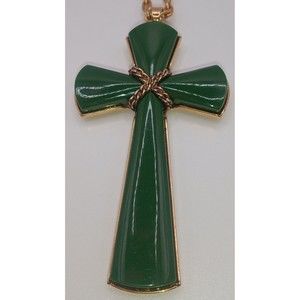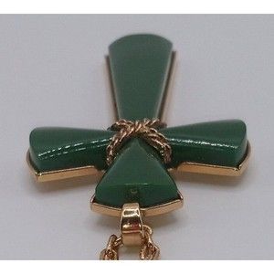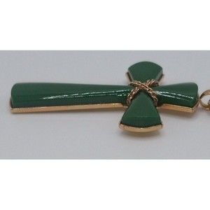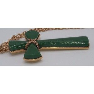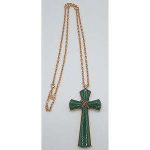 Vintage 1975 Avon Faux Jade Gold Tone Juliet Cross Pendant Necklace.