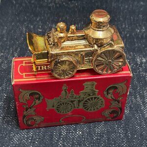 Charming piece of nostalgia from the 1970 era. Avon's First Volunteer Decanter (it originally contained Öland Cologne). The glass bottle is shaped like an antique fire engine and commemorates the dawn of the steam engine and the bravery of the volunteer fire fighter. Thank you to all of those called to service.