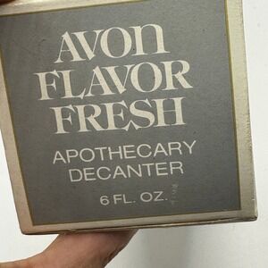 A vintage treasure, this Avon Flavor Fresh Apothecary Decanter in its original box offers a touch of nostalgia and charm. The glass decanter is adorned with an eye-catching hobnail pattern, adding a touch of texture and visual interest, topped with a spherical stopper. This is an empty bottle with the box. It has a unique history as a mouthwash container. This decanter is a beautiful piece of home decor, adding a vintage touch to your vanity or bathroom. Ideal for collectors of vintage Avon products or those seeking a distinctive decorative piece, this decanter will make a stylish statement displayed on a shelf, used as a bud vase, or repurposed as a unique liquor decanter.