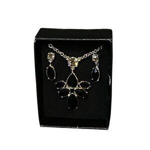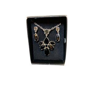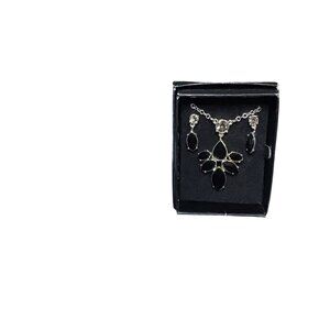 This Avon Floral Clusters Necklace and Earrings Set, with its timeless design and silver tone finish, evokes a sense of vintage elegance. The set's floral-inspired silhouettes, adorned with black stones, exude a classic charm reminiscent of bygone eras, making it a cherished addition to any jewelry collection.