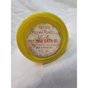 Avon Foam Bath Oil Empty Bottle Koffee Klatch Lilac Yellow Coffee Pot 5 Fl Oz