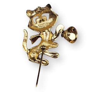 Avon Frisky Kitty Brooch Vintage 1974 Cat Bell Pin Rhinestone Brushed Gold Plate