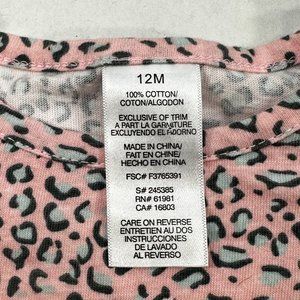Avon Girl's Size 12 Month 2 Piece Top And Pant Set Animal Print Pink Preowned