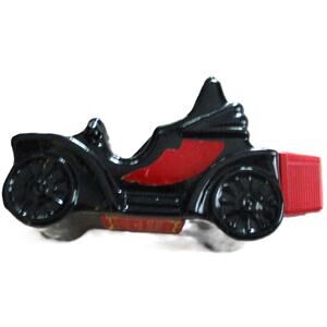 Electric Charger Spicy After Shave was a men’s fragrance distributed by Avon in the mid-1970’s. The decanter is made of black glass in the shape of an automobile with a square red top on its rear bumper that served as the opening for removal of the after shave. The decanter is 6 inches long and 3 inches high. The glass is intricately cut making a beautiful decorative.