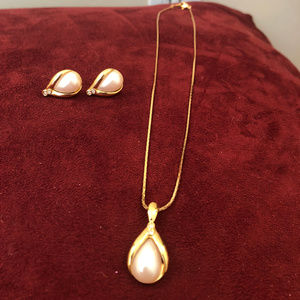 Avon Gold Faux Pearl Necklace & Matching Earrings