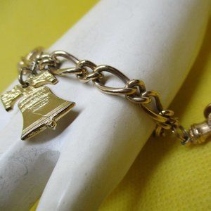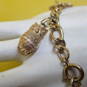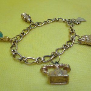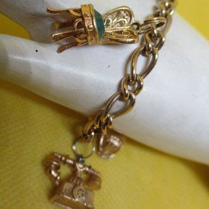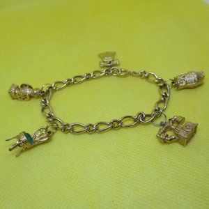 Avon Gold Tone Charm Bracelet Owl Telephone Chair Coffee Grinder Liberty Bell