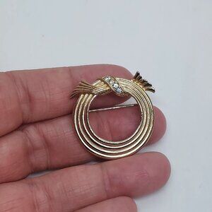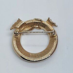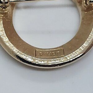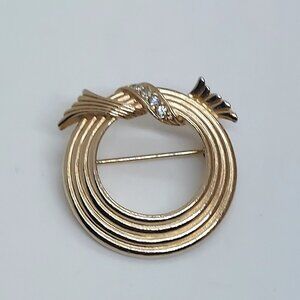 Avon Gold Tone Four Ring Circle Pin with Pavé Wreath on Top