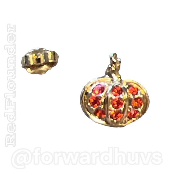 Avon Gold Tone Halloween Pumpkin Rhinestone Earrings EUC
