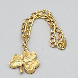 Avon Gold Tone Link Bracelet Green Clover Leaf Pendant Charm Spring Ring Close