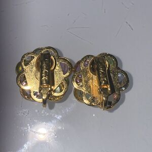 Avon Gold Tone Pastel Bezel Crystal Flower Clip-on Earrings Pink Green Blue