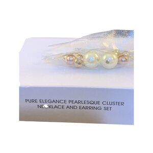 Step back in time with this Avon Pure Elegance Pearlesque Cluster necklace and earring set. A timeless ensemble showcasing lustrous pearls and delicate gold-tone accents, it exudes vintage charm. Perfectly presented in its original box, this set promises an elegant touch to any classic jewelry collection.