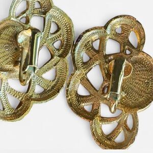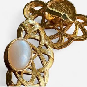 faux pearl accents, gold-tone design, clip-on style, retro accessory, statement earrings, 80s vintage, 90s vintage, nostalgic jewelry, elegant detail, classic glamour