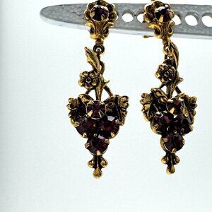 Avon Gold-Tone Dangle Drop Earrings Purple Rhinestones Grape Motif Vtg MCM