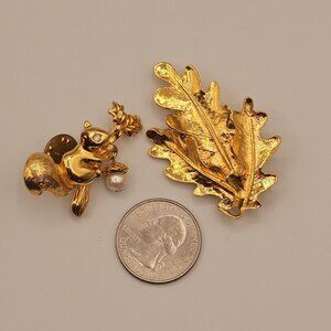 Avon GoldTone Squirrel Oak Leaf Fairy Cabin CottageCore Whimsy Fall Harvest Pins
