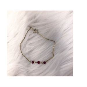Avon beautiful dainty gold colored chain bracelet with 3 ruby red jewels along the front. Lobster clasp. 7” long.