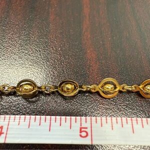 This exquisite gold bracelet features a linked chain design with intricate decorative details on each link. Its polished finish enhances its warm, yellow gold hue, making it a standout piece in any jewelry collection. The bracelet's medium length ensures a comfortable fit, reflecting light beautifully with every movement. Vintage 1992