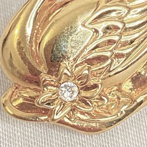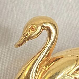 Avon Golden Swan Brooch Single Clear Rhinestone Flower And Babies
