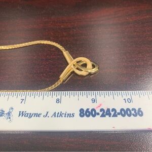 Elegant goldtone necklace with a unique knot design. Perfect for any occasion.