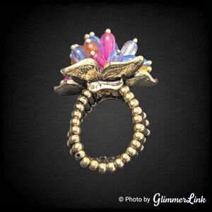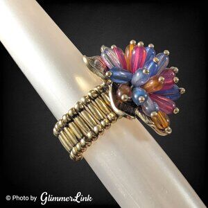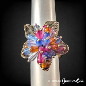 Colorful Avon stretch ring featuring a Hawaiian flower accented with blue, orange and pink beads.