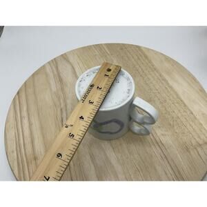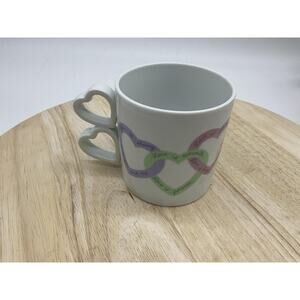 Item: Ceramic coffee mug/cup featuring a distinctive double heart-shaped handle