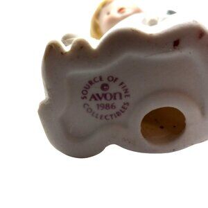 This Avon 1986 collectible figurine features a boy with a lamb, crafted from porcelain in soft pastel colors. A charming addition to any collection, its intricate details and gentle hues make it an elegant decorative piece.