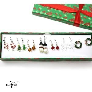 Avon Holiday Earring Set 7 Pairs Festive Designs Green and Red Gift Box -Hey Viv