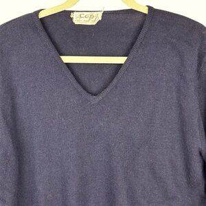 Avon Keit 100% Wool V-neck Sweater Minimalist Contemporary Navy Blue Preppy