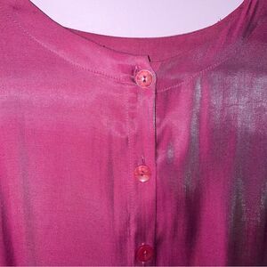 Avon L Blouse Pink Two Tone Dhoop Chao Shimmer Long Sleeve Button Collarless
