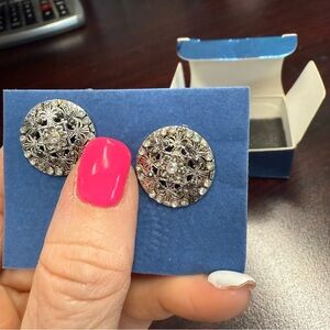 Avon Medallion Silvertone Filigree Earrings NIB 2005 vintage