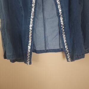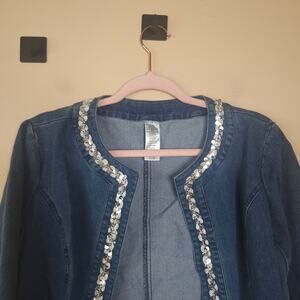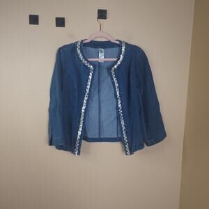 Avon Medium Wash Open Front Denim Jacket with Sequin Size S