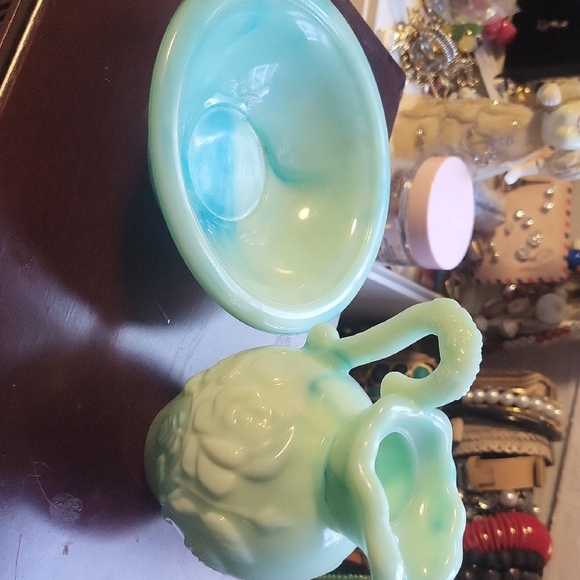 Elegant mint green pitcher and bowl set by Avon. Perfect for adding a touch of vintage charm to your decor.