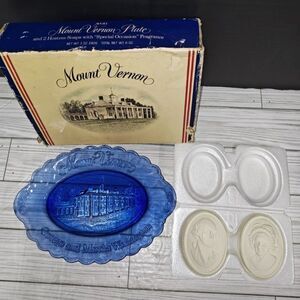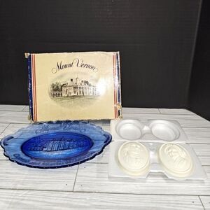 Avon Mount Vernon George and Martha Washington Cobalt Blue Oval Plate Soap Box. Has some wear from age and storage. See pictures. Sold as is.