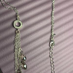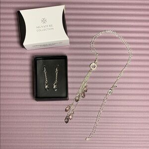 Elevate your style with the jewelry set. This elegant set features a silvertone drop necklace and matching earrings. Perfect for any occasion.
