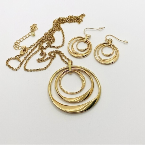 Avon NWT Marked Necklace Gold Tone Vintage 28”+3” statement modern pendant and Earrings