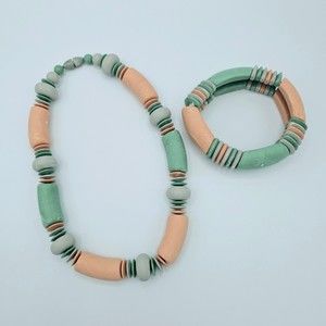 Avon Necklace Bracelet Vintage Marbled Peach Mint Geometric Chunky Beach