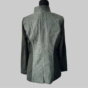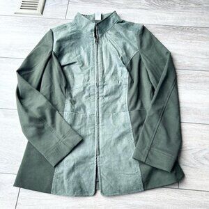 Avon Olive Green Knit Sleeves Leather Jacket Full Zip