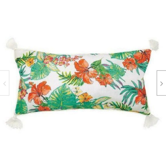 Avon Palm Chic Oblong Pillow Cover Tropical Print Tassel Details Corners 12x24"
